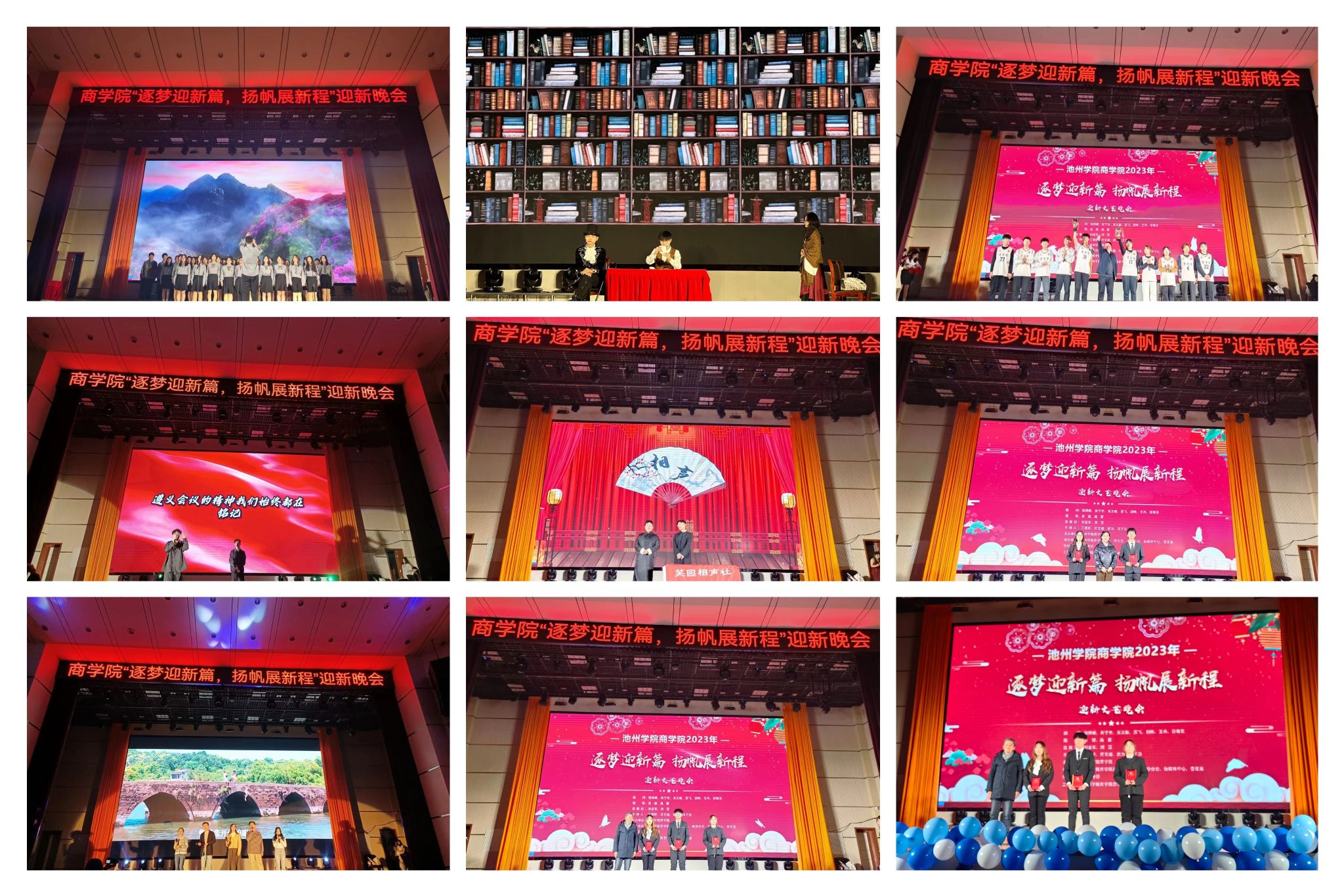 12月20日,商学院 2023年“逐梦迎新篇,扬帆展新程”迎新文艺晚会在博古礼堂成功举办。商学院领导班子和师生共400余人共同观看了晚会。