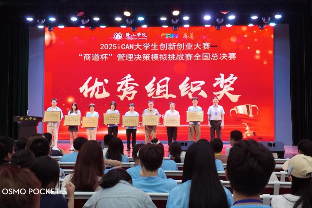 7月12日至14日,2025iCAN大学生创新创业大赛“商道杯”管理决策模拟挑战赛全国总决赛暨虚拟仿真实验教学项目的建设与共享交流研讨会在黄山学院召开。太阳集团网站8722(法学院)“什么都队”团队获得全国总决赛二等奖(指导教师:杨树琛,王剑程),“商业大亨”团队获得全国总决赛三等奖(指导教师:杨树琛,王琴),另有十五支队伍获得省级奖项,tyc8722太阳集团首次在全国总决赛获得优秀组织奖。