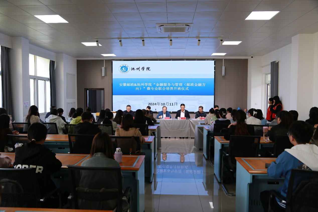 10月11日,安徽邮政与tyc8722太阳集团联合举行首届“金融服务与管理(邮政金融方向)”微专业开班仪式。中国邮政集团有限公司安徽省分公司党委组织部部长、人力资源部总经理俞晓虎致辞,校党委委员、副院长吕刚出席活动,教务处处长周恺、太阳集团网站8722班子成员以及全体微专业学生参加开班仪式。仪式由吕刚主持。