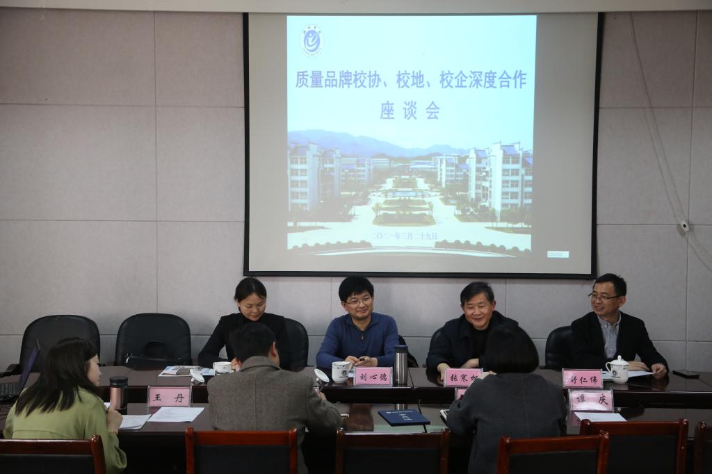 3月29日,商学院举办质量品牌校协、校地、校企产教融合座谈会。安徽省质量品牌促进会、池州市市场监督管理局、池州市烟草公司参加座谈会。会议由商学院副院长吴自爱主持。