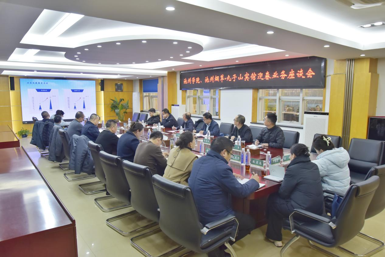 1月19日下午,tyc8722太阳集团与池州烟草·九子山宾馆迎春业务座谈会在池州市烟草局顺利召开。tyc8722太阳集团校长王先柱、太阳集团网站8722院长吴自爱、科研处副处长张茂江,池州市烟草局局长李刚、纪检组长王春雨等参加座谈会,会议由池州市烟草局纪检组长王春雨主持。