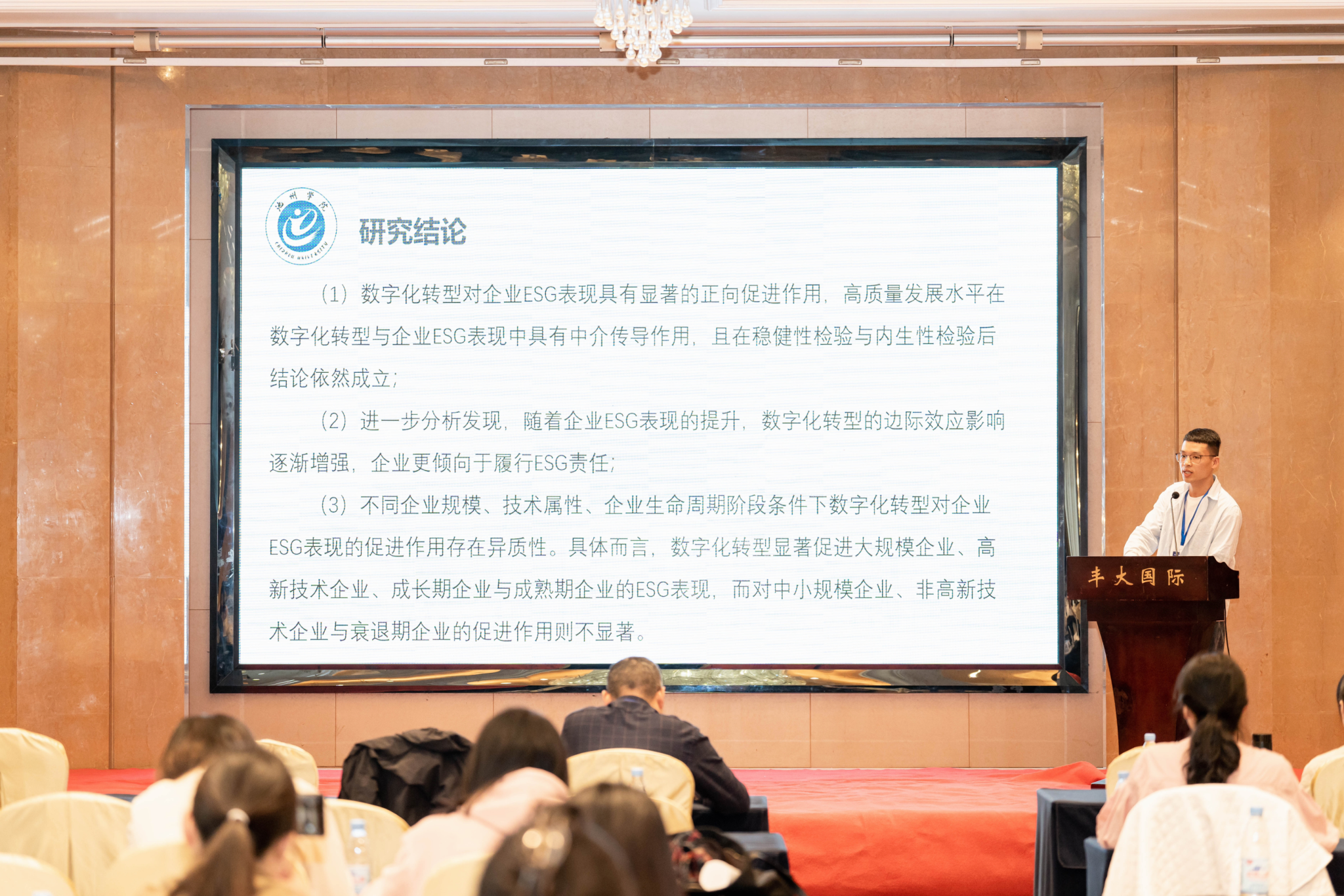 分论坛报告阶段,中国矿业大学、安徽大学、安徽师范大学、安徽工业大学等高校学者就“环境会计与可持续发展”、“资本市场变革与企业投融资创新”、“高质量发展与中国特色的会计发展创新研究”等内容进行报告与讨论。商学院青年教师吴铖铖老师就“数字化转型、高质量发展水平与企业ESG表现”进行主题报告,探讨数字化转型对企业ESG表现的促进作用以及高质量发展水平的中介作用机制,专题汇报获得与会专家学者的一致好评,研究成果获评2023安徽会计学者论坛二等奖。