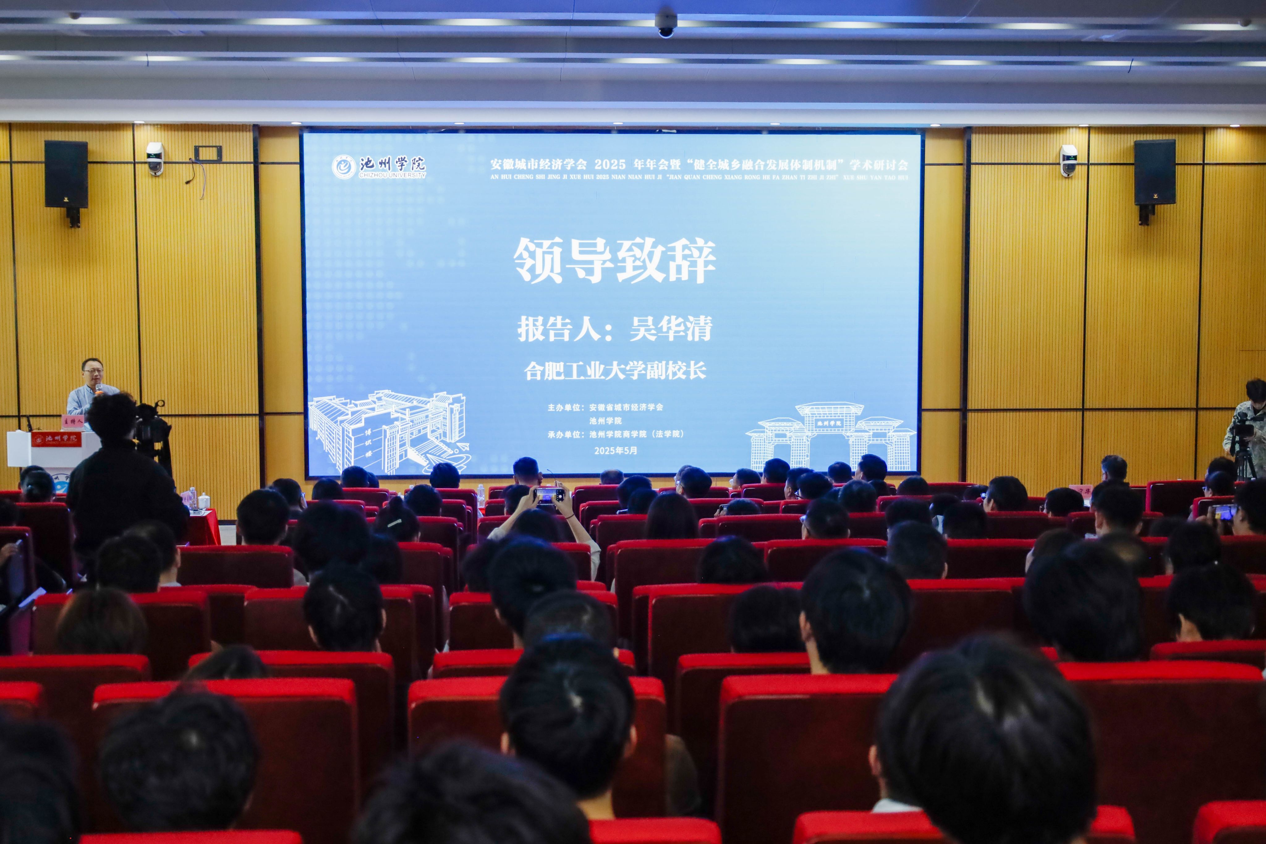 5月10日至11日,安徽城市经济学会2025年年会暨“健全城乡融合发展体制机制”学术研讨会在我校顺利举办。学校党委副书记、院长王先柱,合肥工业大学副校长吴华清,安徽财经大学原党委常委、副校长周加来,蚌埠工商学院副校长汪时珍,合肥师范学院副校长周端明、中国科学技术大学EMBA中心主任刘志迎、安徽大学人文社科处处长李静等出席开幕式。来自省内外高校和科研机构的两百余名代表参加会议。
